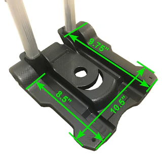Over-sized rugged wheels for improved handling.Adjustable support strap anchors bag and prevents shifting.