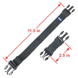 A pair of adjustable straps that allows your BrightLine Bag to be attached to the two quick-release buckles on certain models of the Luggage Works or Purdy Neat rolling suitcases. 22" tall or 26" tall.